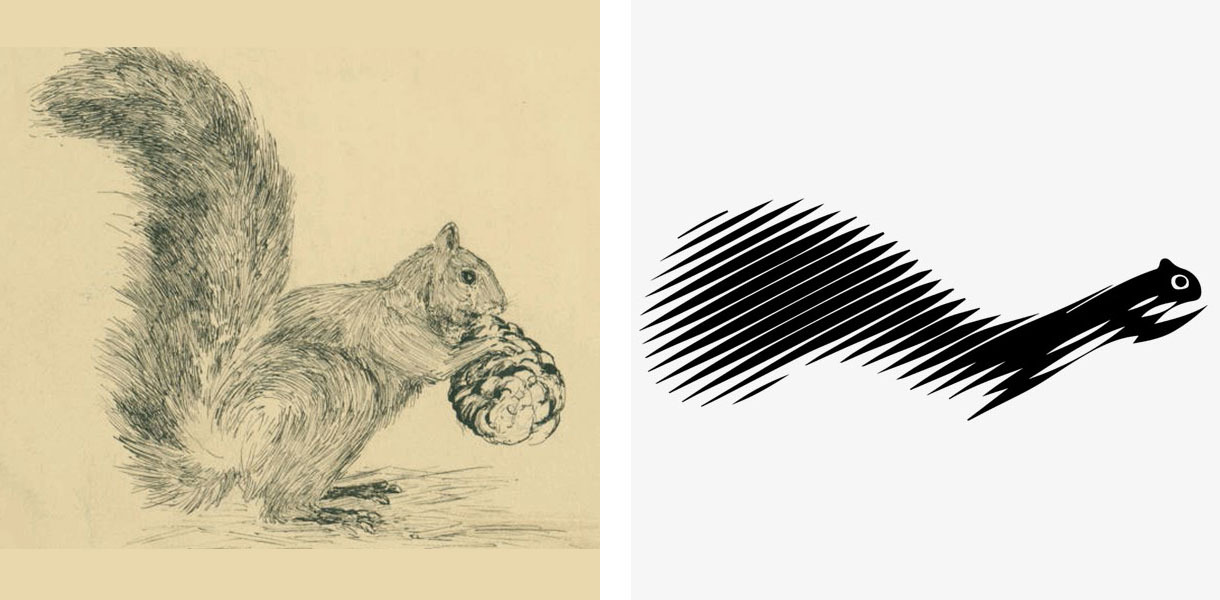 | | | | Точка, линия, плоскость. Этот урок расскажет об основах и основных элементах, с помощью которых дизайнеры создают визуальные сообщения. | | | | Cуществует множество разных подходов к теме двумерного дизайна, для целей данного урока полезно рассматривать их как рисунок (точки, линии и плоскости), композицию (гештальт-форма, баланс, ритм, единство) и цвет. | | | | Графические дизайнеры полагаются на те же инструменты, которые используют художники для визуализации мира природы - точки, линии и плоскости (фигуры), чтобы превратить сложное изображение или концепцию в краткий, прямой или вызывающий воспоминания символ или дизайн. Для графических дизайнеров точки, линии и плоскости являются важными инструментами для планирования, визуализации, оценки и в конечном итоге донесения идей до широкой аудитории. | | | | Рис. слева. Белка, Джон Мьюир. Художник использует точки, линии и плоскости для реалистичной визуализации белки, держащей сосновую шишку. Рис. справа. Ecureuil, Caisse d'Epargne, Roger Excoffon. В этом графическом символе того же животного дизайнер Роджер Экскоффон использует точки, линии и плоскости, чтобы не только выразить идею «белки» зрителю, но и передать ощущение скорости и ловкости, обычно ассоциируется с животным. | | | | Точки - это самые фундаментальные элементы, которые используют художники и дизайнеры; простая точка или крошечная капля чернил или краски, которая привлекает внимание зрителя к позиции на странице или холсте.