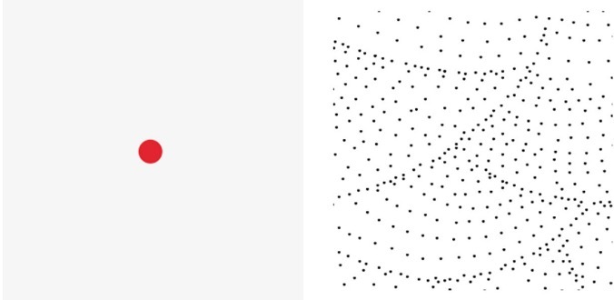 Несмотря на то, что они могут быть видимыми, художники часто используют точки в качестве невидимых инструментов в создаваемой ими работе, например, в форме точки схода на перспективном рисунке.